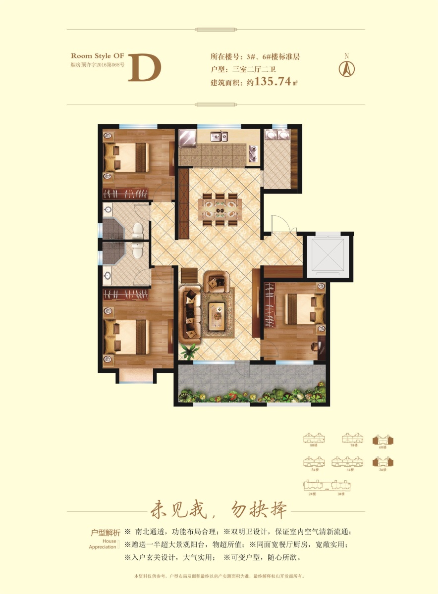 D户型-3室2厅2卫-135.74㎡