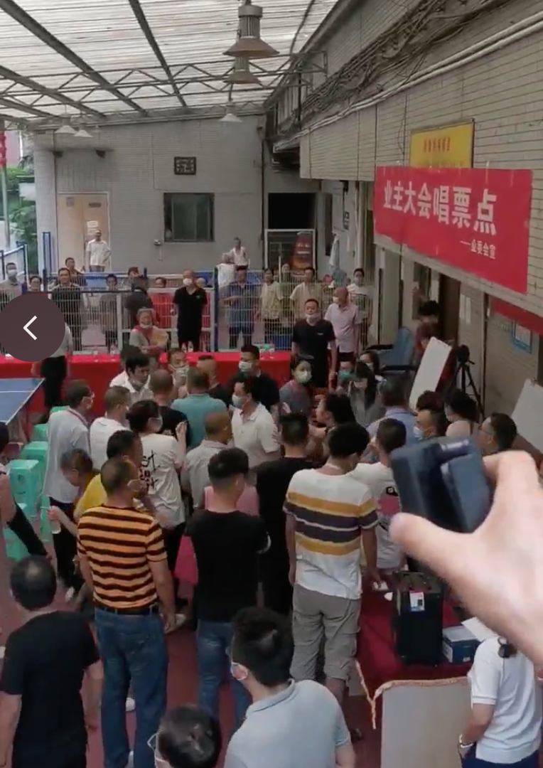 9月11日,根据业主提供照片显示,这些不明身份的人又出现在了骏逸新视界。在骏逸新视界解聘新隆信物业投票结束后,还未开始唱票,他们就在唱票点捣乱现场,砸主席台、破坏记录仪等,甚至还带动了一些不明真相的业主的跟风,最终导致唱票工作无法正常进行。