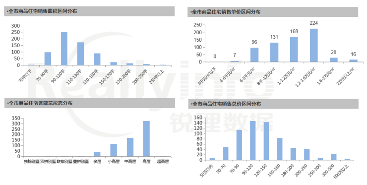 【产品结构】本周全市商品住宅成交多为高层,面积集中在90-110㎡,总价多位于90-120万之间