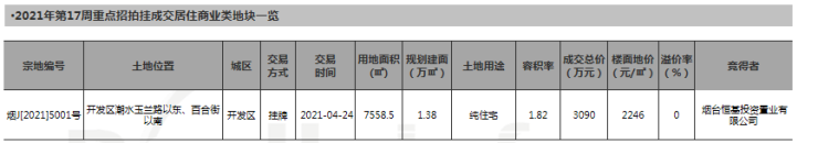 【土地成交】第17周成交土地1宗土地。恒基投资置业拿下开发区潮水玉兰路以东、百合街以南地块。