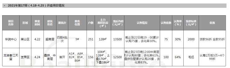 【周度开盘】锐理数据监测烟台市2021年第17周共2个项目开盘。
