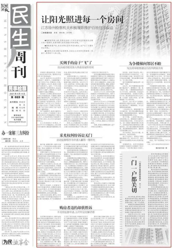 近日,《检察日报》刊发了江苏检察机关依法履行监督职责,维护正当住房权益的案例。