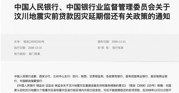 还有一种情况,如果是发生了特大自然灾害导致大量的房子集体倒塌,政府就可能会对房贷采取统一的处理措施。比如当年汶川地震,央行和银保监会就联合发文,取消了部分受灾百姓的房贷,说白了就是,在严重情况下,国家是在给大家兜底的。