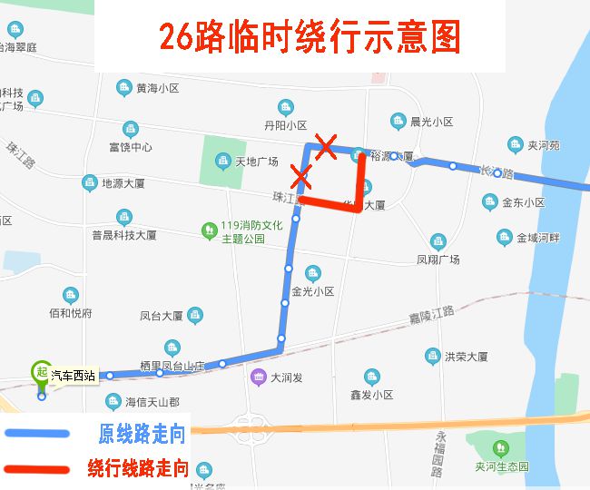 取消:金胜小区东门、彩云城(开发区三联家电)等2处站点。