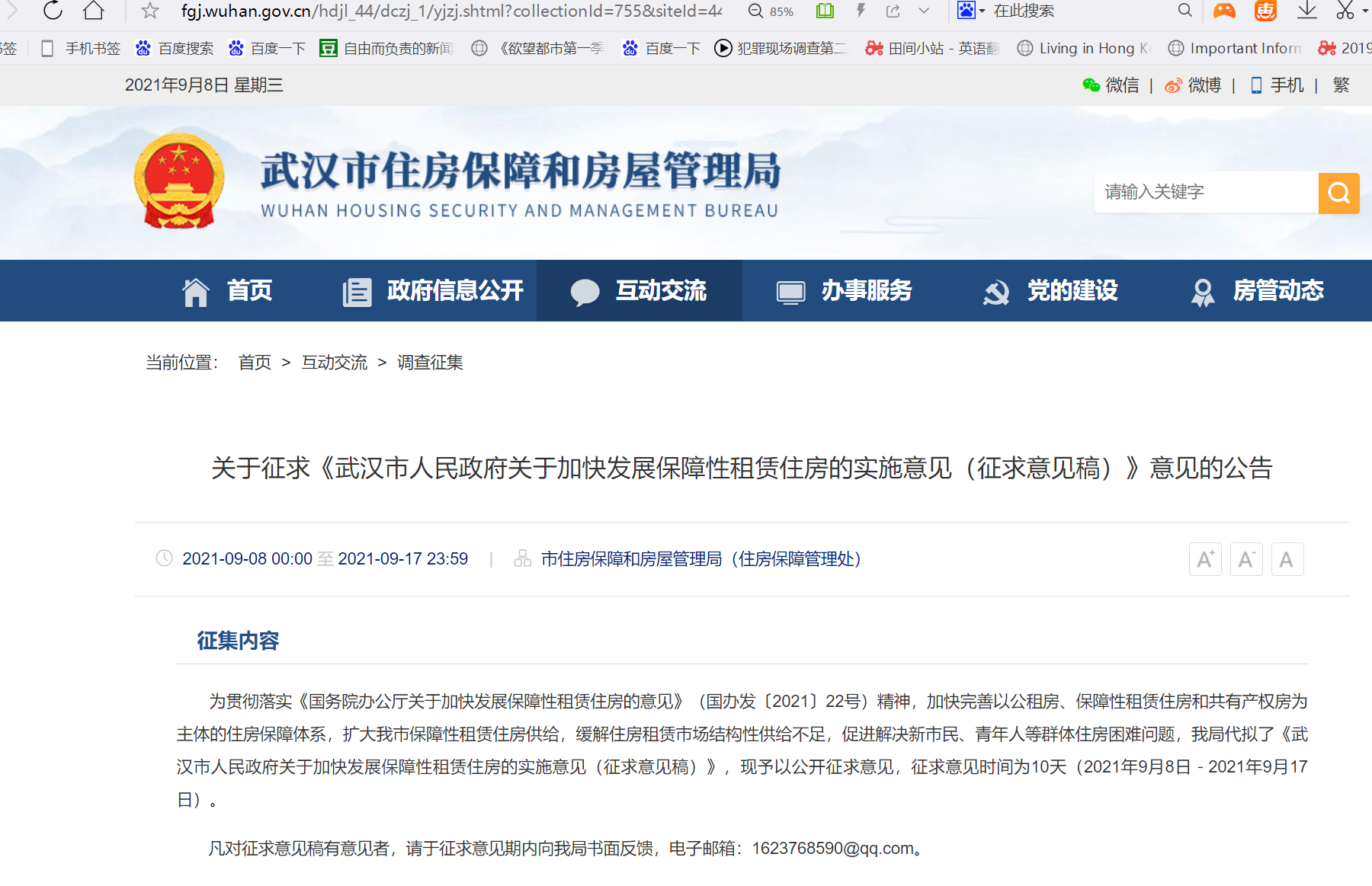 9月8日,武汉市住房保障和房屋管理局发布了《武汉市人民政府关于加快发展保障性租赁住房的实施意见(征求意见稿)》(下称“征求意见稿”),其中提出,保障性租赁住房以建筑面积为30-50平方米左右的小户型为主,单套房屋建筑面积原则上不超过70平方米,并配套基本生活设施。租金则按不高于同地段同品质市场租赁住房租金的85%评估确定。在满足需求的情况下,可按保障性租赁住房租金标准面向社会出租。