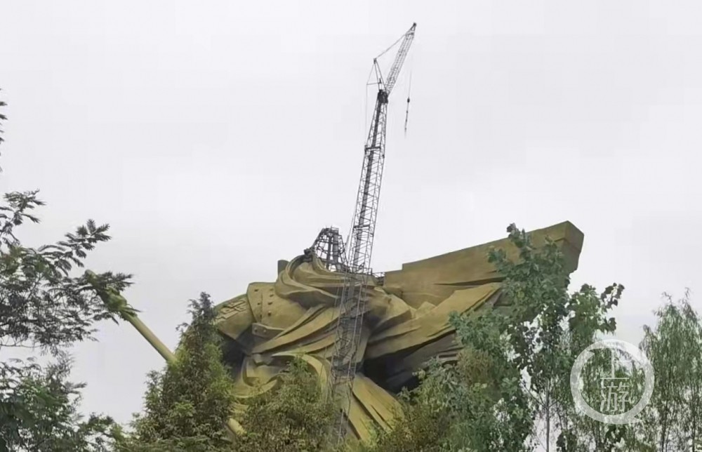 9月2日,上游新闻记者从湖北荆州旅游投资开发集团有限公司董事长邓勇处确认,备受关注的关公雕像搬移工程正式启动,雕像头部已卸下。