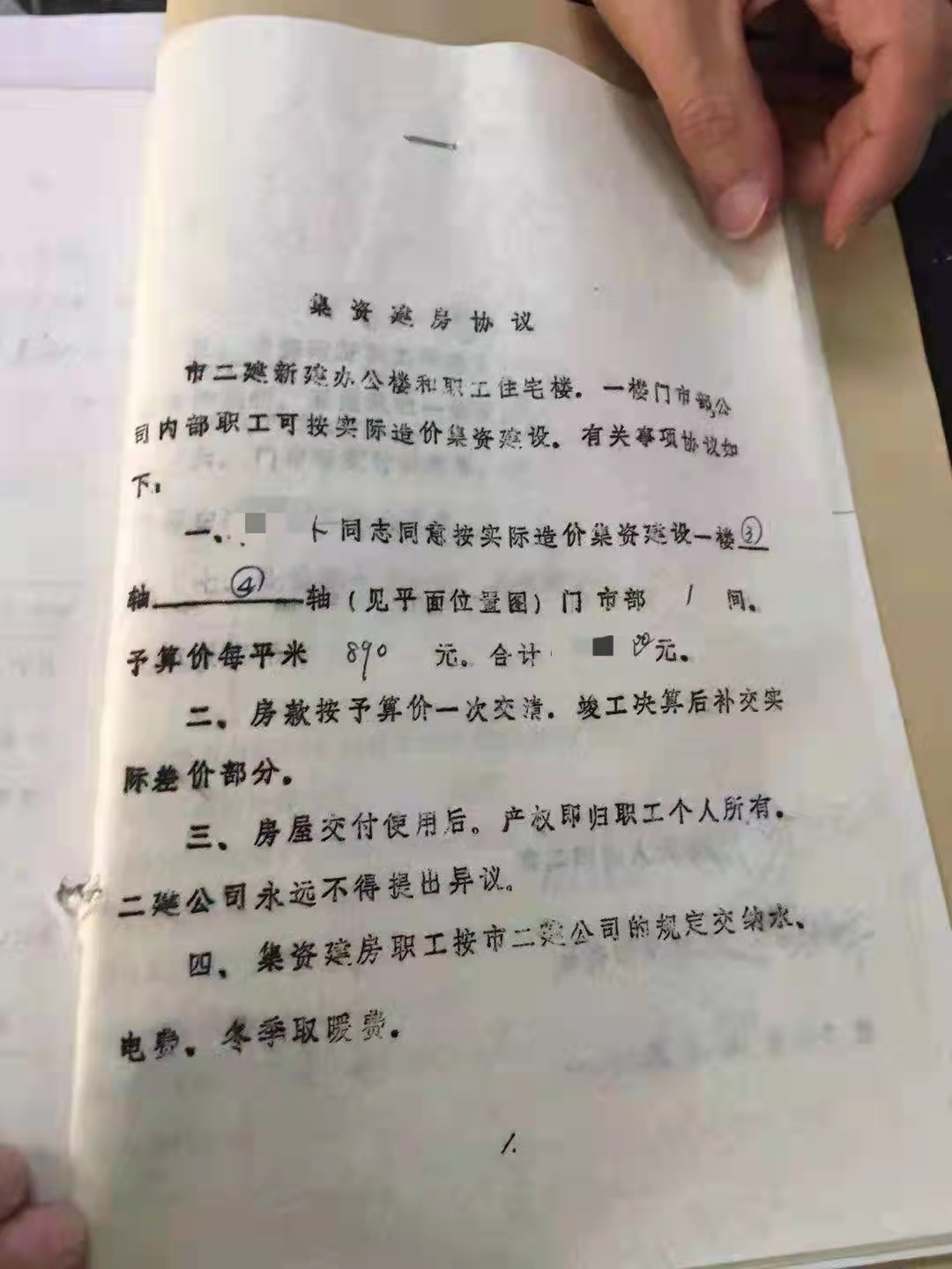“从去年开始,我申请将房本上的‘住宅’改为‘商业’性质,搜集了近三十年的材料,几乎跑遍了乌兰察布市以及集宁区大大小小的部门。其间,我因为办证找过集宁区不动产登记中心原主任周雅卿,但是至今仍未办理妥当。在周雅卿被查后,办证的事还是没有进展。”赵正说。根据赵正提供的原始协议显示,该套房子所在的整栋楼属于当时的办公楼,项目一楼属于门市房。