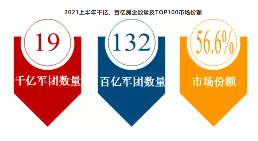 头部房企间的分化加剧并不阻碍千亿军团加速扩容。1-6月,销售额破千亿元的房企达到19家,较去年同期(13家)增加6家;同时百亿元房企132家,较去年同期(107家)增加25家。
