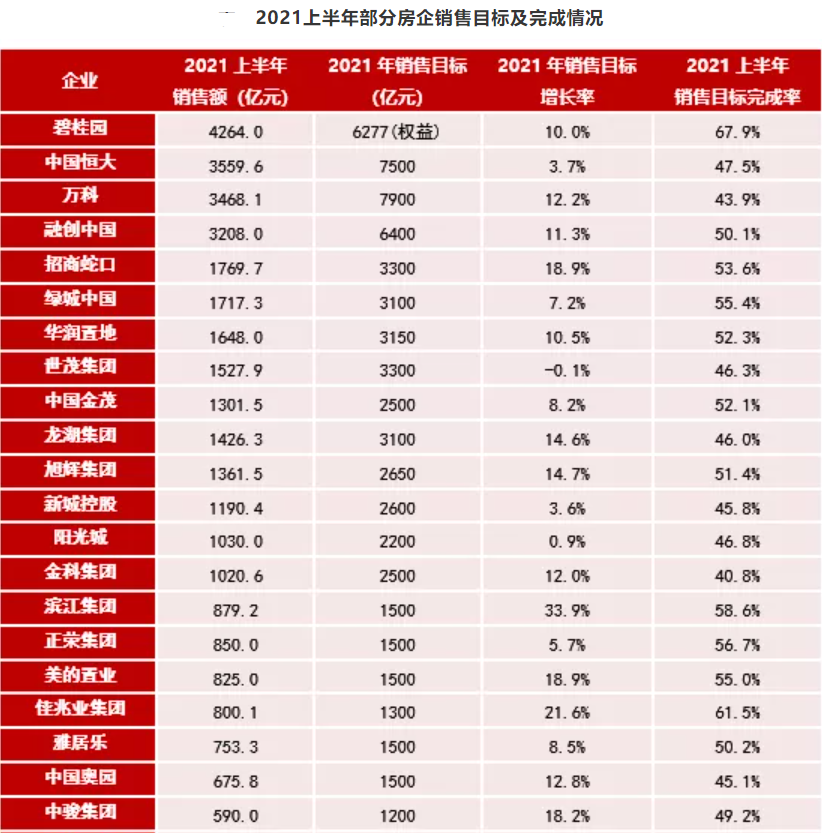 32家房企目标完成率超五成