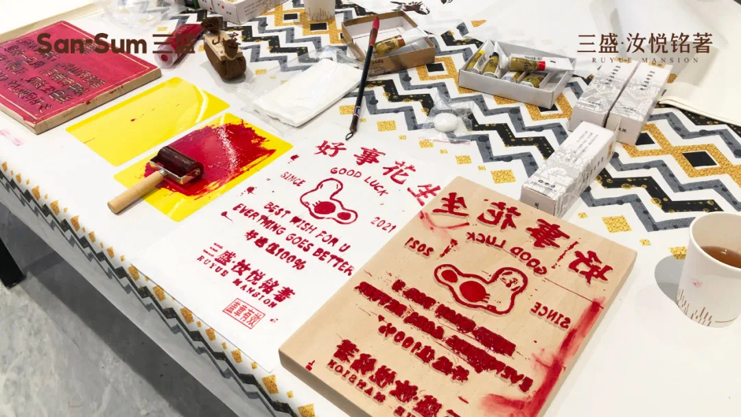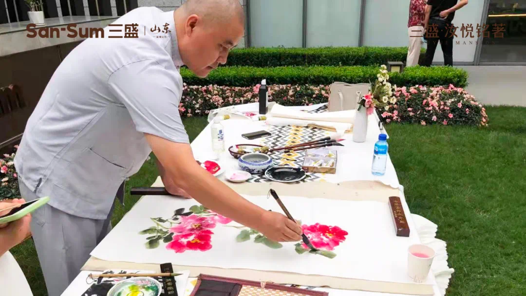 营销中心内外各活动区都受到到访者的关注与参与,或在雕版印刷区体验拓印之美、或在弓箭标靶区展现自己非凡的技艺、亦或者在书画创作区近距离观赏书画大家挥毫泼墨的风采,一场关于国学文化盛宴的传播徐徐展开。