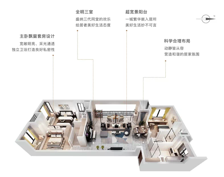 此次开放的建面约129㎡奢境实体样板间,为一家人的生活呈现全新的生活体验。从进门的那一刻起,美好生活便悄然发生。入户玄关设计,邂逅归家的排名前列份美好;餐客一体化大横厅设计,将餐厅、客厅、阳台融于一体,打破空间原有的界限,让更多风景融入生活日常。
