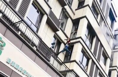 徒手爬楼救下男童 男子上演真人版"蜘蛛侠"