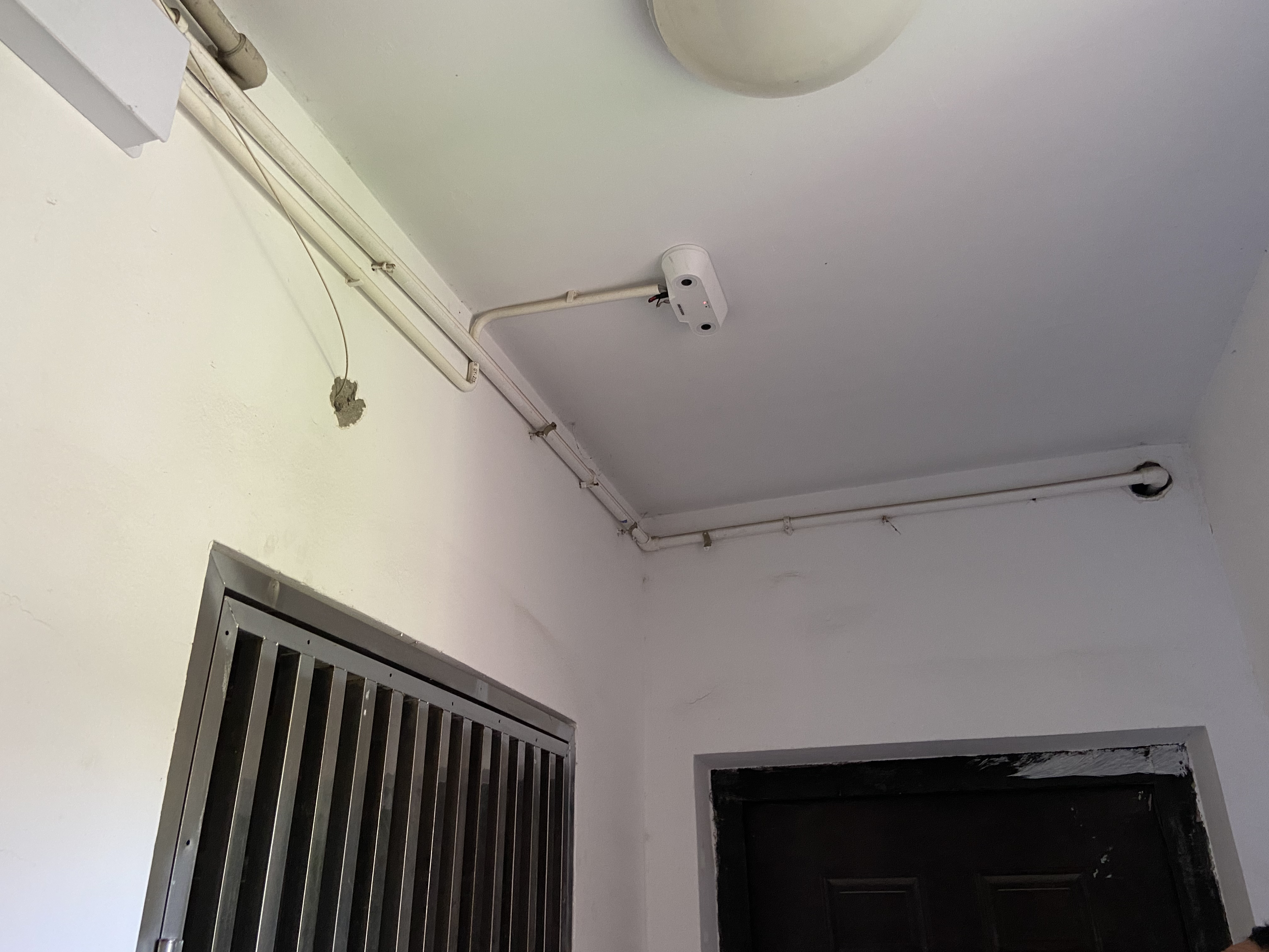 这样的智能设备在爱博四村有很多。楼道里,智能烟感、楼道堆物感知、消防水箱感知也都在发挥作用,甚至在一些重点房屋门口,也安装了智能感知设备。在一户住宅门口,记者看到天花板上装有感知设备。