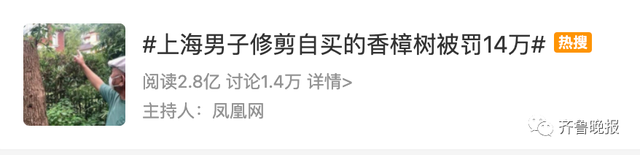 因嫌树木遮挡阳光,上海李先生修剪自己种的香樟树,没想到却被罚款14.42万元。近日,这事冲上了热搜。