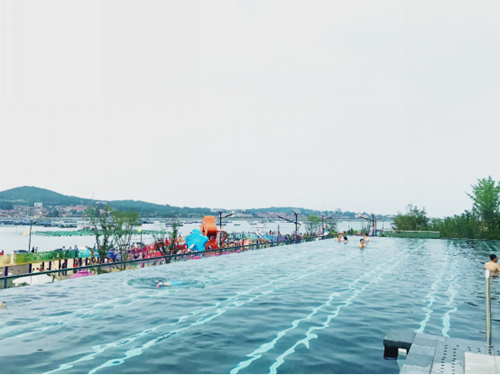 烟台龙湖葡醍海湾无边际泳池实景照片