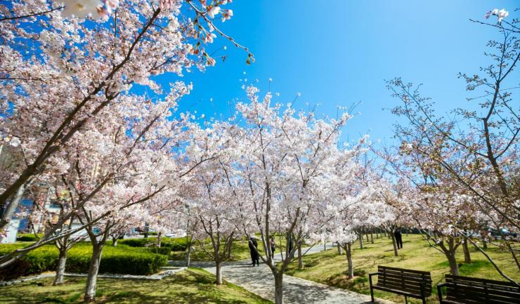 龙湖首届国际樱花节,两公里樱花海,两天吸引6万余人到访,万人空巷