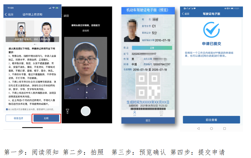 需要提示的是,请严格按照要求拍摄和上传照片,避免过度修图,对恶意上传、使用违规照片的,公安交管部门将停止电子驾驶证申请使用,并将按照有关规定进行处理。
