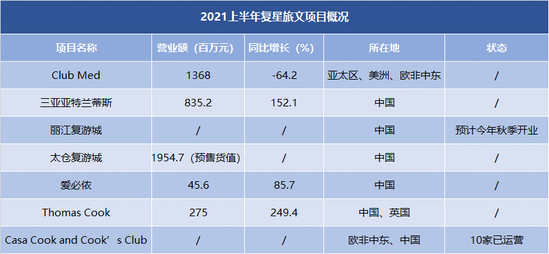 数据来源:复星旅文2021年中期业绩公告,观点指数整理