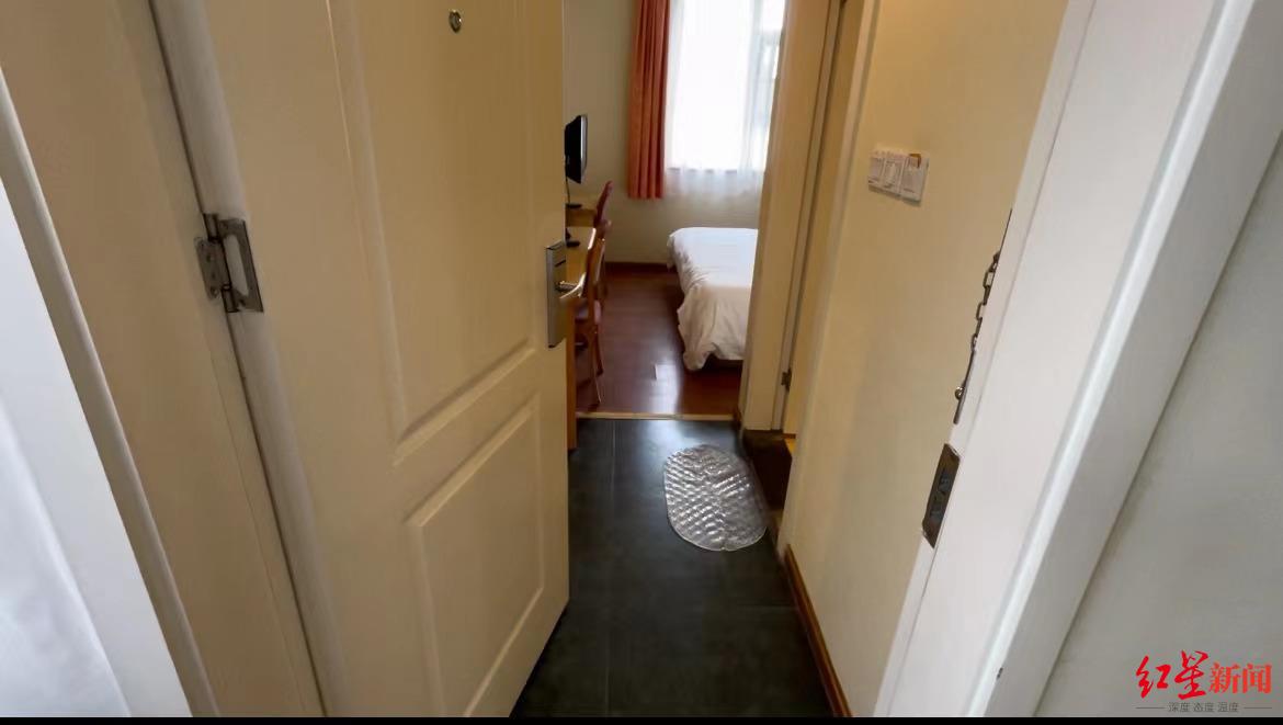 随后,前台电话联系客房工作人员,“看下客人有没有在房间,前台有先生找他,因为没有资料,没办法让他直接进去。这边想确保她的安全,帮忙进去看一下。如果敲门没有反应,就按正常流程先看一下房间情况。”
