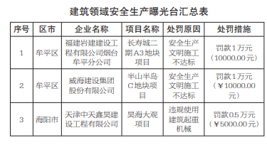 水母网8月25日讯(YMG全媒体记者 杨健 通讯员 陈新民)近日,烟台市建筑领域安全指挥部深入推进安全生产大排查大整治行动,组织专家对全市建筑工地开展安全检查,对3家存在问题隐患的企业进行了查处,并予以公开曝光。