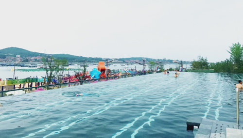 烟台龙湖葡醍海湾无边际泳池实景照片