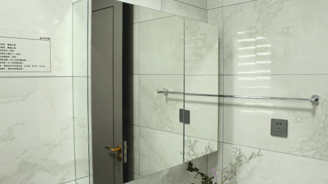 ◎ 145㎡样板间实景图,仅供参考双卫收纳分为镜柜、地柜、拓展三部分,将卫生间容易堆积的零碎杂物一网打尽,空间更加清爽整洁。三面镜设计,满足女主人的一点小心思。