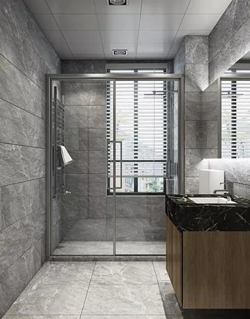 双卫设计,实现分流,盥洗、沐浴互不干扰,保护自己与客人的隐私。明窗设计,通风性好,兼顾整齐收纳的需求与大气华贵的视觉效果。