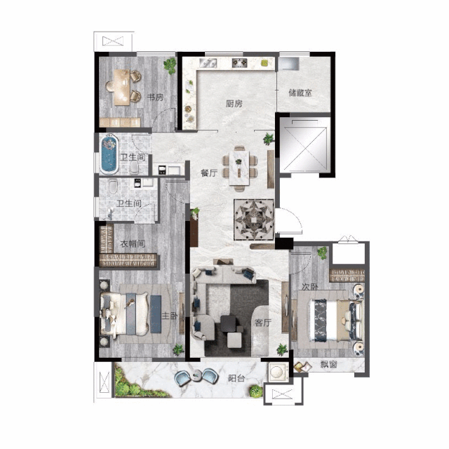 收纳型飘窗,超高的空间利用率和科学的规划布局,使业主可自在随性地尊享生活。