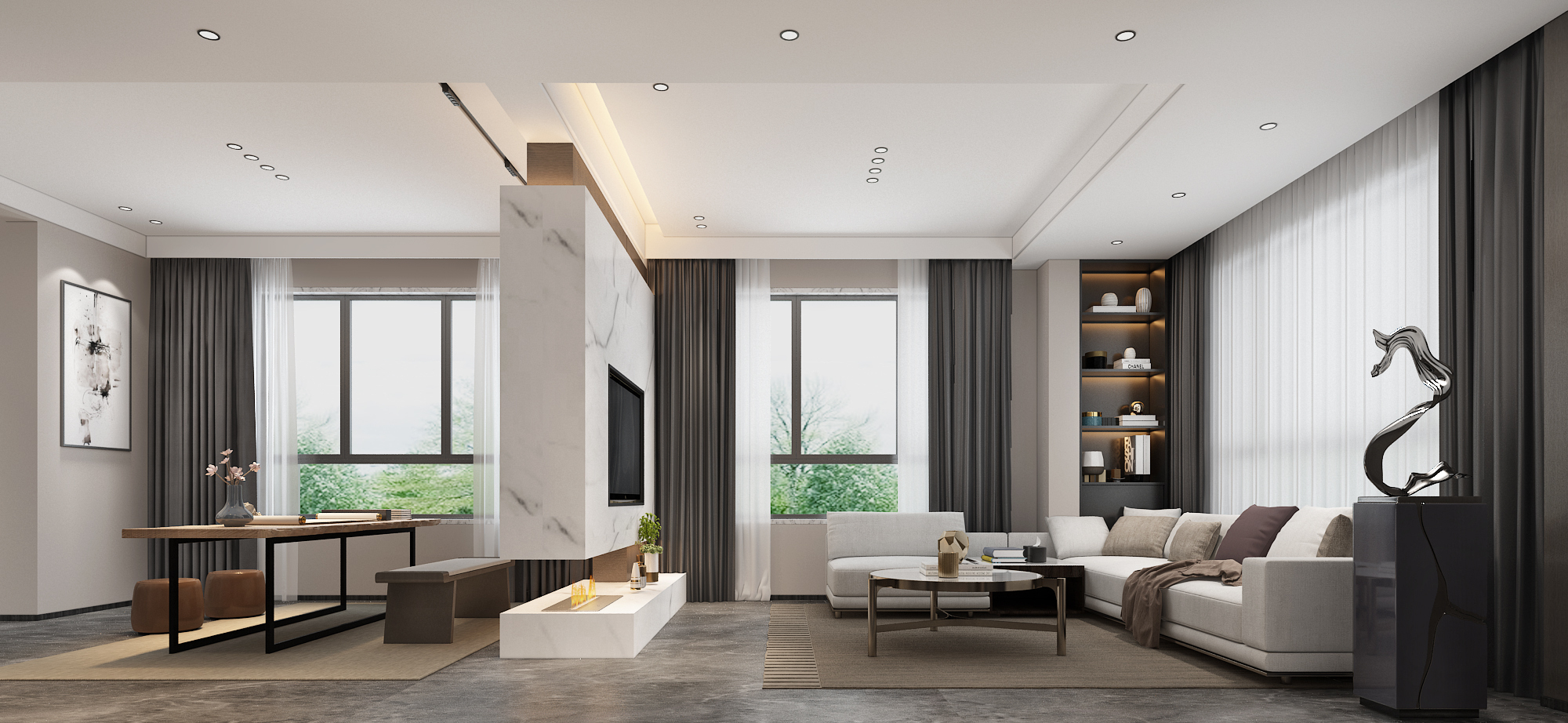 烟台华浔品味装饰:招商马尔贝拉261平现代轻奢风装修效果图