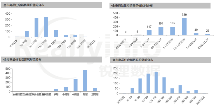 【产品结构】本周全市商品住宅成交多为高层,面积集中在110-130㎡,总价多位于120-150万之间
