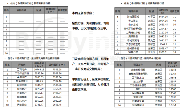 【烟台楼市周报】楼市持续量升价跌趋势,万科销售金额继续先进