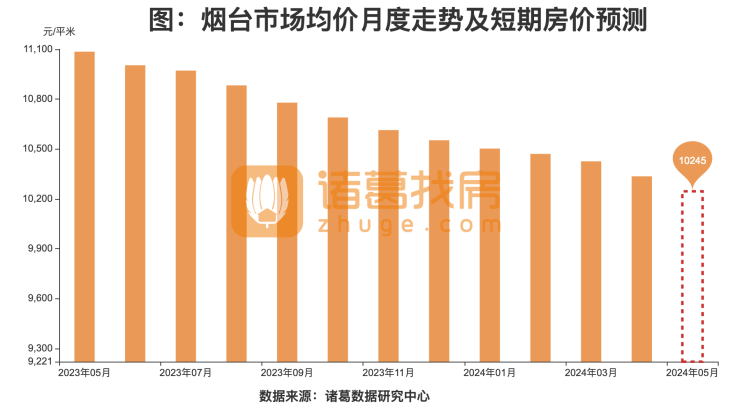 一、房价预测:烟台未来1个月价格走势下降,累计下降0.88%