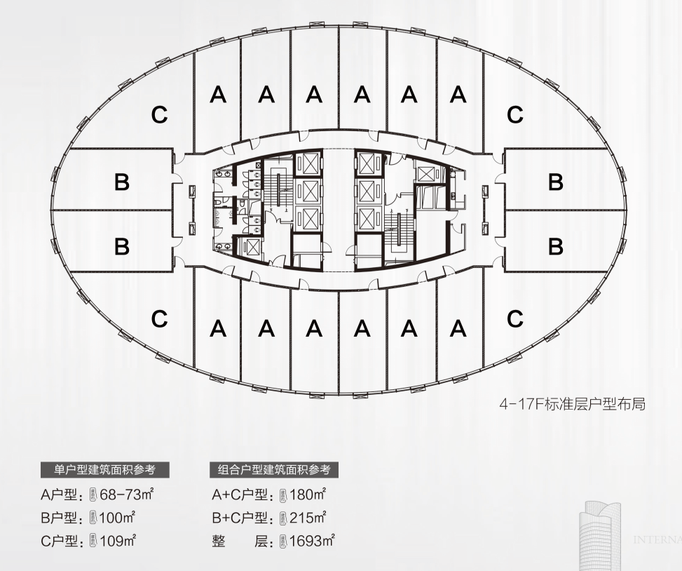 建面约68-215㎡商务办公空间,3.9米阔绰层高,任意分隔设计,灵动支持全业态商务形式。