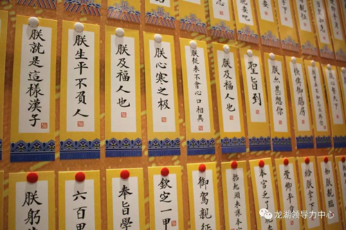 虽然历史总给人枯燥无趣的印象,但在龙湖葡醍大讲堂,历史讲座也可以萌萌哒!作为每期的彩蛋,这次的签到形式我要给101分,多一分也不怕骄傲!签到墙的左侧是一个剪刀手的可爱皇帝,右侧挂满了随便你翻的“牌子”:朕略萌、朕一生自信、圣旨到……每位前来听课的同学都可以选择一张自己喜欢的牌子带走,还没开始上课,大家对历史的热情就提前被点燃了。