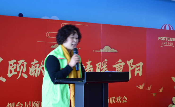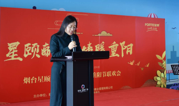 烟台亲情家园负责人曲连君女士,作为老人们的小棉袄,在台上代表老人们对开发区政府、烟台星颐置业表示由衷的感谢,表示继续投身于公益事业,为老人提供更多的服务。