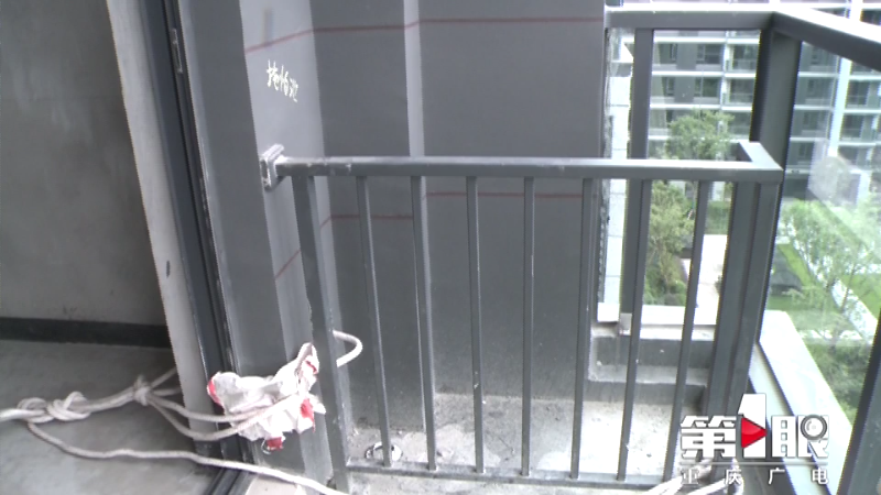 杨女士的新房位于两江新区保亿御景玖园7幢801,客厅外的阳台上有一个装空调外机的铁栏杆。杨女士说,开发商提供的户型图上,这里应该有一面墙,把装空调外机与阳台隔开。