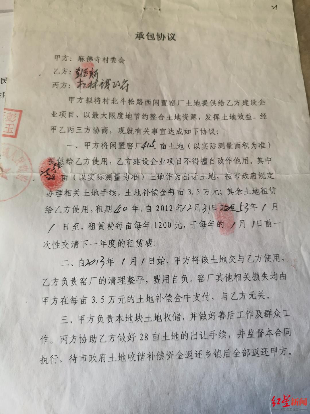 彭玉新向红星新闻记者提供的上述《承包协议》内容显示,麻佛寺村委会将村内闲置窑厂土地41.5亩,提供给彭玉新建设企业项目,“以较大限度地节约整合土地资源,发挥土地效益。”