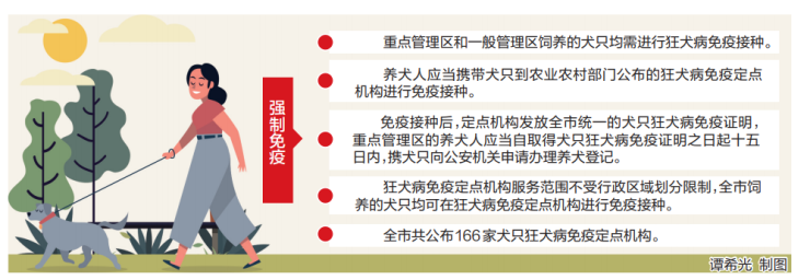 市农业农村局党组成员、副局长赵剑波介绍,重点管理区和一般管理区饲养的犬只均需进行狂犬病免疫接种。全市共公布166家犬只狂犬病免疫定点机构,具体信息可以在烟台市农业农村局或当地农业农村部门网站上查询。