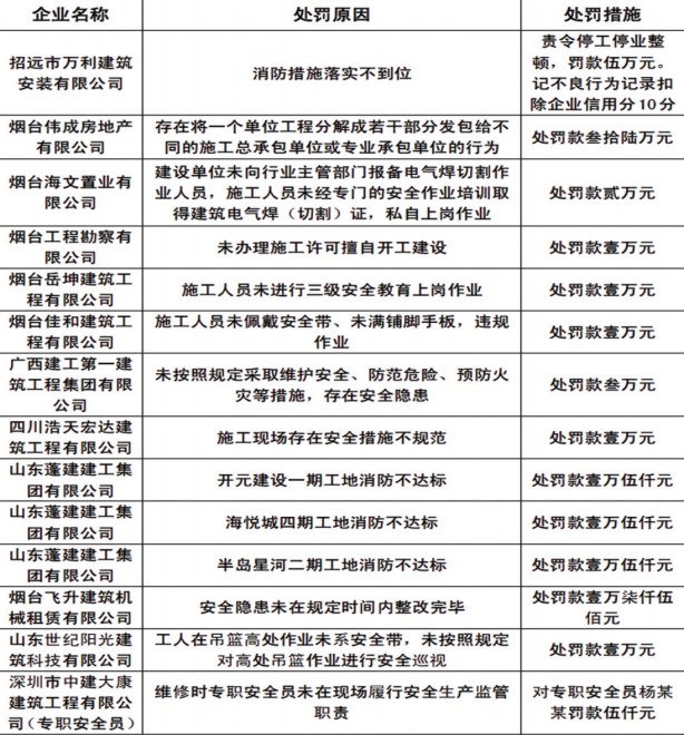 安全生产|烟台市公开曝光12家建筑安全问题隐患企业
