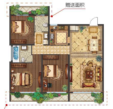 有露台,就有72种打开春天的方式,颜值五层洋房,送飘窗,送阳台,送花厅,合计赠送36㎡。