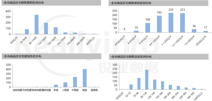 【产品结构】本周全市商品住宅成交多为高层,面积集中在90-110㎡,总价多位于90-120万之间