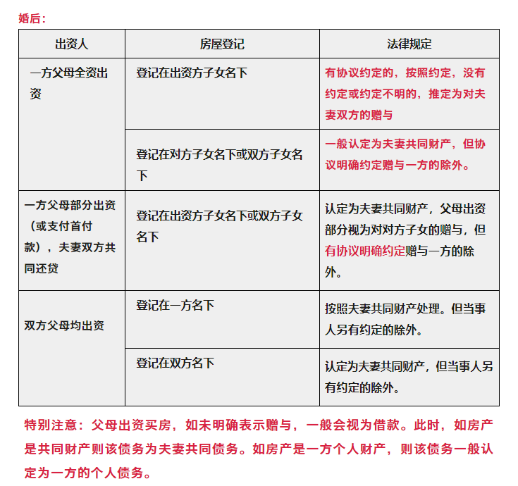 婚前买房、婚后买房、父母出资购房房产归属一览表