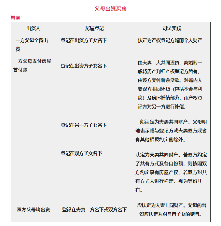 婚前买房、婚后买房、父母出资买房 房产归属一览表