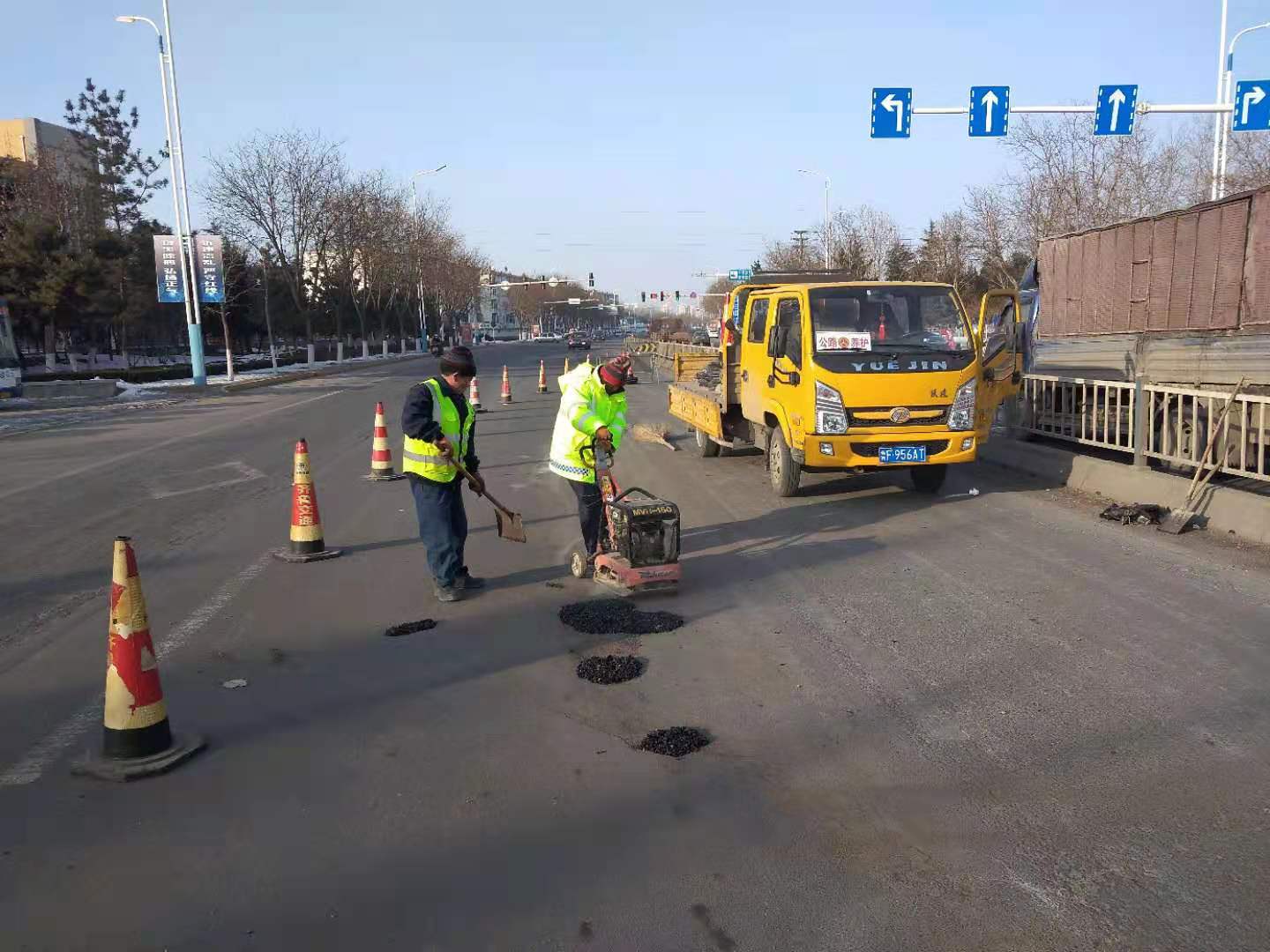 雪后“疗伤”烟威高速管理处 抓紧修补路面坑槽