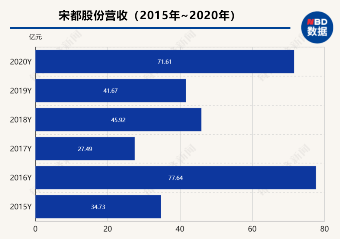 年报显示,2020年宋都股份的销售额为207亿元,未能实现300亿元的既定目标。今年上半年,宋都股份全口径销售额109亿元,并未进入房企百强之列。与此同时,其新增土储面积也从2019年的133万平方米下降至2020年的70万平方米,拿地愿望强烈。