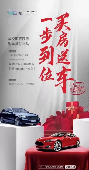 临近年末,深圳不少开发商集中推盘入市抢收。供应一多,卖方便“卷”起来了,促销花样层出不穷:有买房送车的,网签完成就送奔驰或特斯拉;有推秒杀“爆款”的,限量出售9.4折特价房20套;有制造“涨价焦虑”的,称“双十二闪购节结束当日价格上调1%”。来源:受访者微信朋友圈
