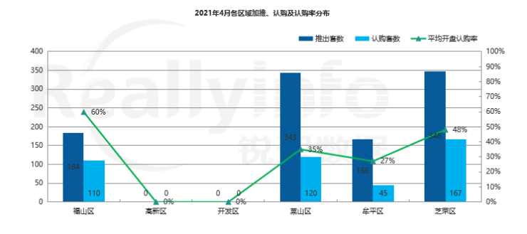 【开盘统计】2021年4月开盘房源主要来自芝罘区,共推出348套房源,占本月开盘总数33%。