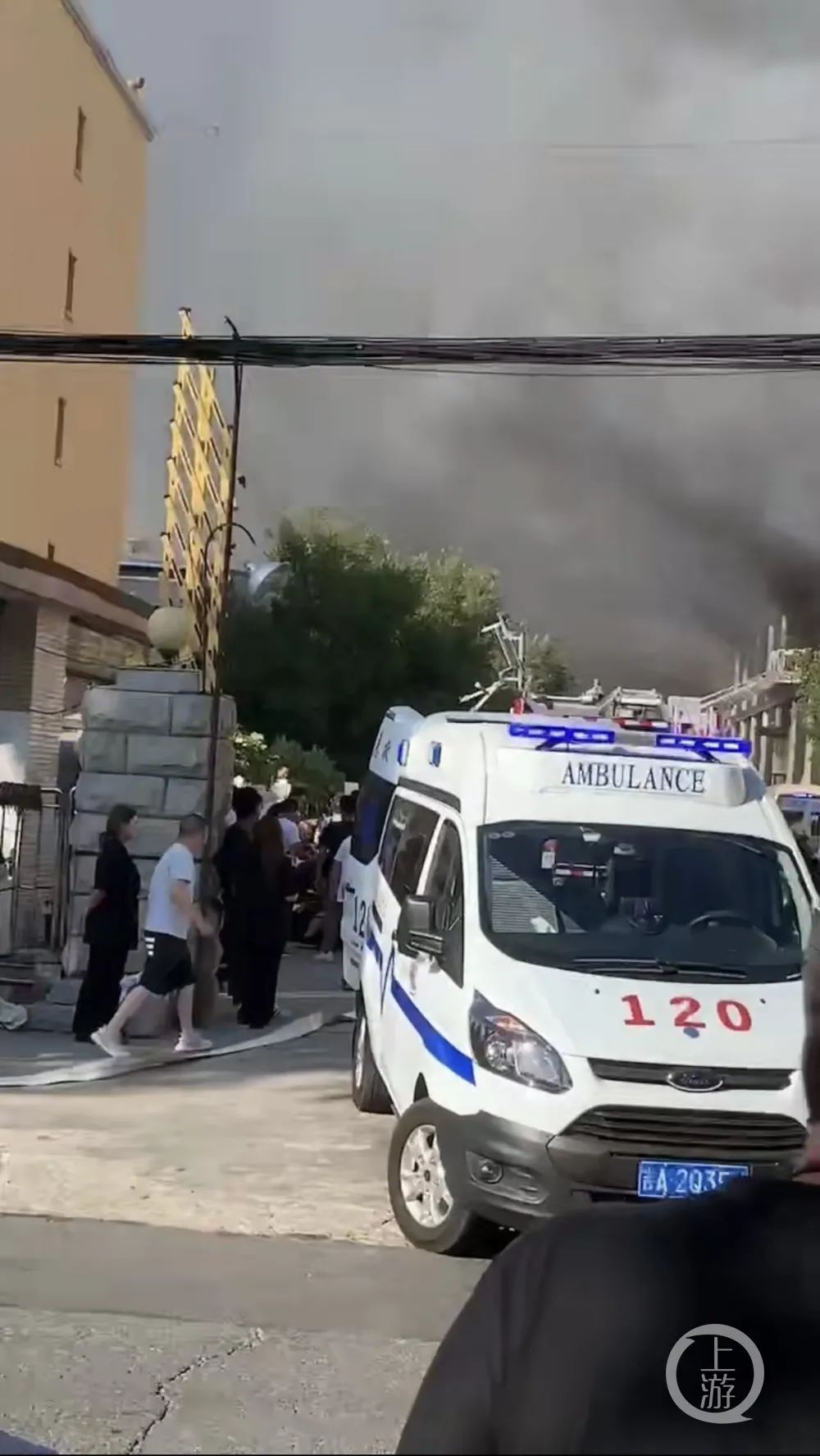 7月24日下午,长春市一物流仓库起火,消防、急救等部门赶到现场救援。/受访者供图