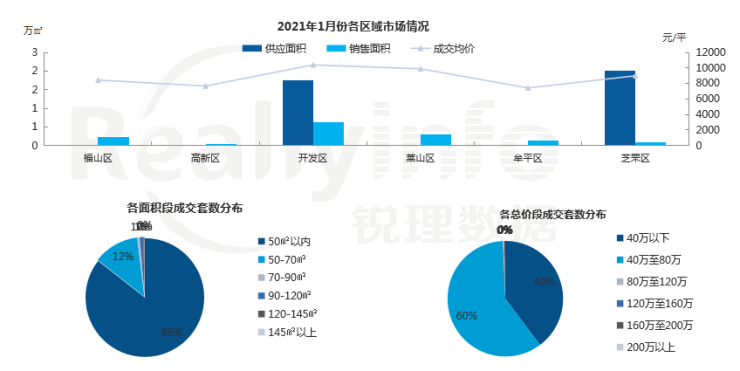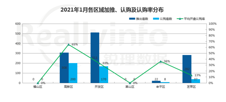【开盘统计】2021年1月开盘房源主要来自开发区,共推出511套房源,占本月开盘总数46%。