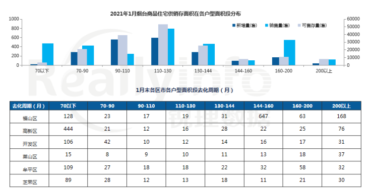 【面积段】1月份110-130平面积段为供销主力,110-130平面积段产品存量亦较大,90-110平面积段去化周期最短